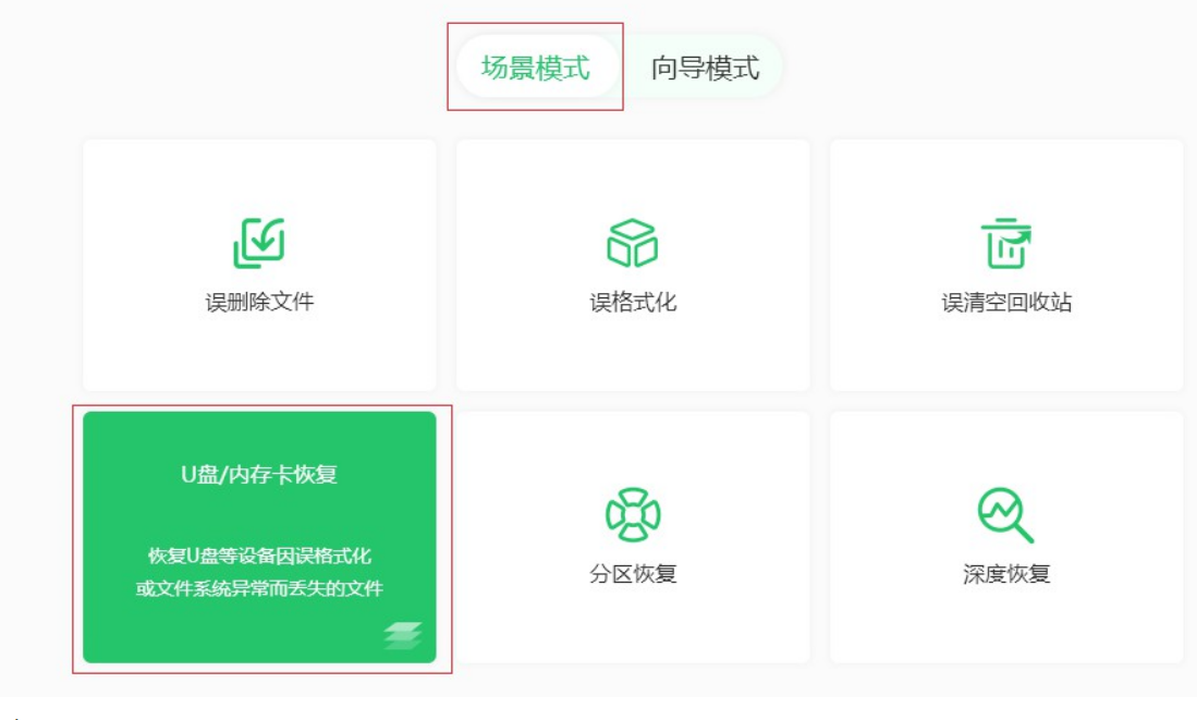 1.下載超級兔子數(shù)據(jù)恢復(fù)到電腦桌面并打開,在【場景模式】下選擇【U盤/內(nèi)存卡恢復(fù)】。