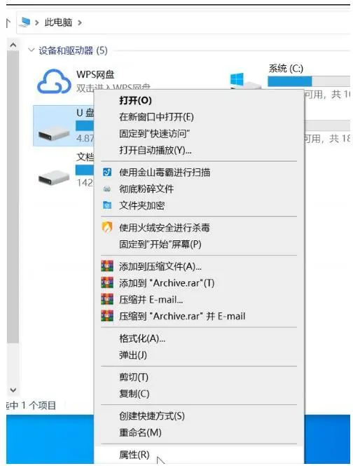1、u盤格式化后數(shù)據(jù)恢復(fù)文件怎么辦,首先接入U盤,關(guān)閉彈出的格式化窗口,右鍵U盤選擇“屬性”進入屬性頁面。