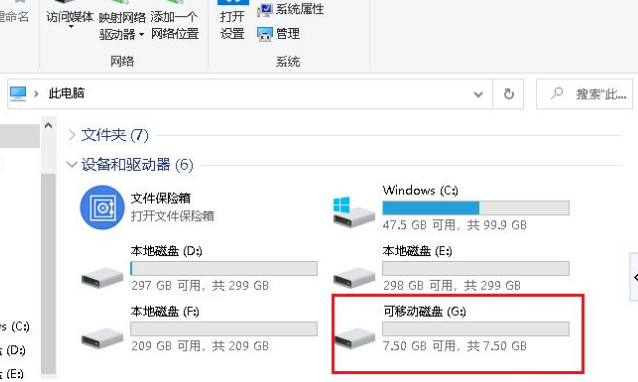 5、重新插入U(xiǎn)盤,打開此電腦,移動(dòng)盤符出現(xiàn),設(shè)置完成。