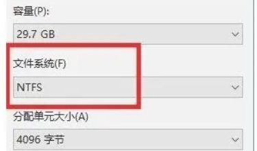 3.將上方的文件系統(tǒng)改為“ntfs”