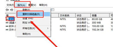 2.選中u盤(pán),點(diǎn)擊工具欄的【操作】,選擇【重新掃描磁盤(pán)】進(jìn)行修復(fù)即可。