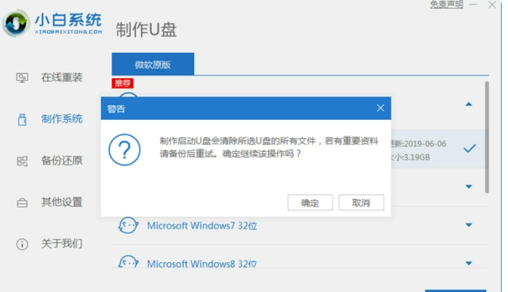 3、軟件需要格式化u盤,確定備份好u盤重要資料后,選擇確定格式化u盤。