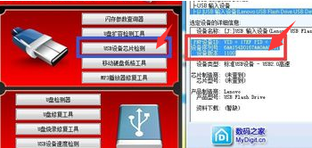 2、雙擊運行“萬能版U盤量產(chǎn)工具”,從彈出的程序主界面中,點擊“USB設(shè)備芯片檢測”按鈕。