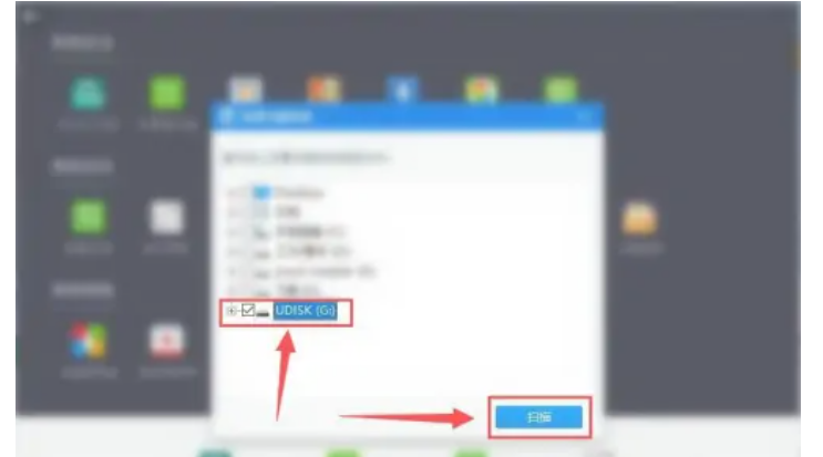 3.在打開的對話框中勾選需要殺毒的U盤,然后點擊掃描按鈕。