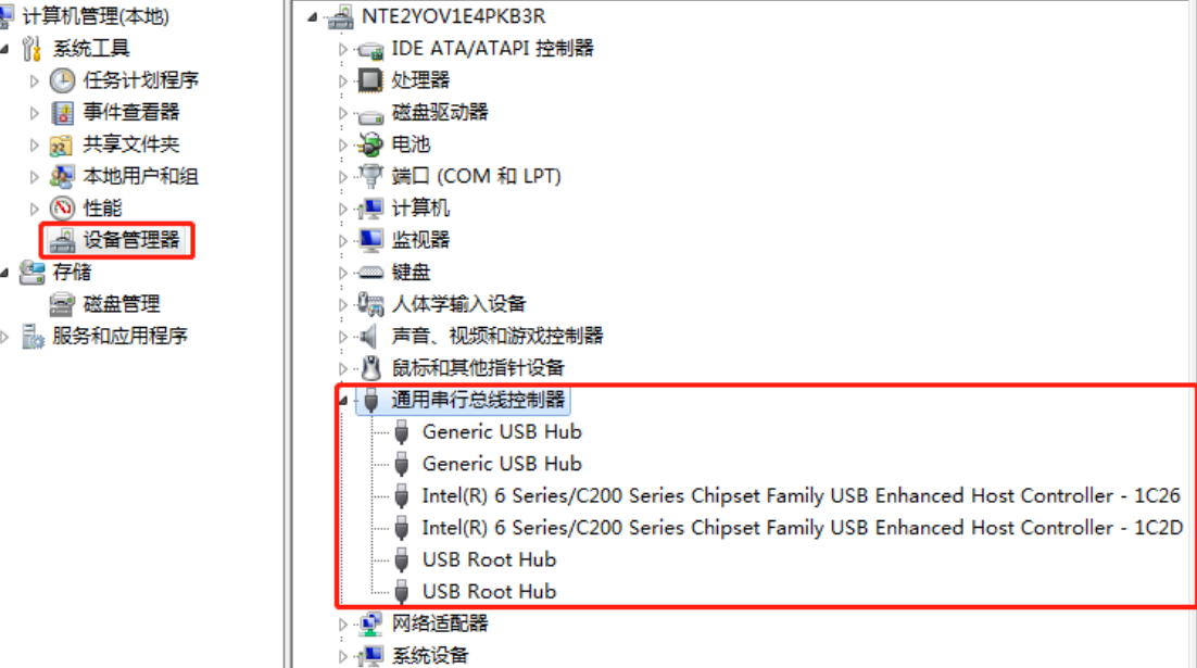 2、之后點(diǎn)擊展開“通用串行總線控制器”,此時(shí)我們可以看到電腦系統(tǒng)所有USB接口。