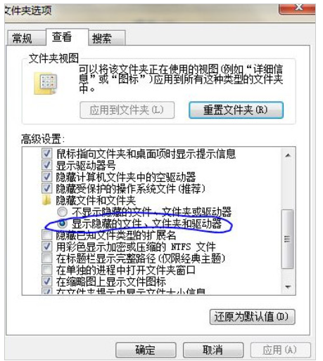 3、找到“顯示隱藏的文件、文件夾、驅動器”選項,打鉤即可。