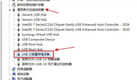 3、在設(shè)備列表中展開,點(diǎn)擊選擇“USB大容量存儲設(shè)備”。