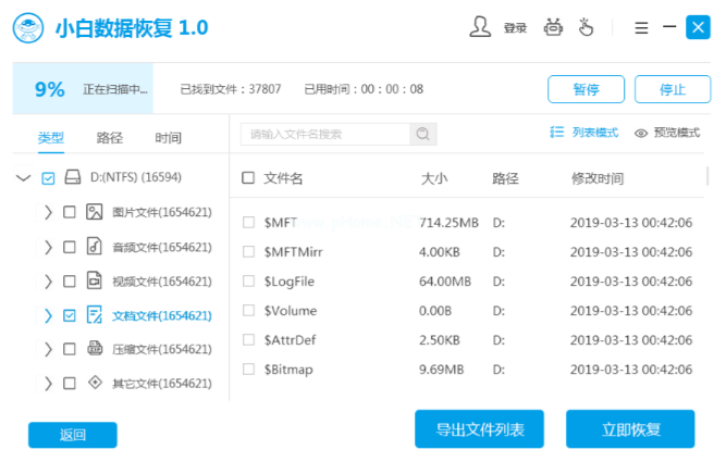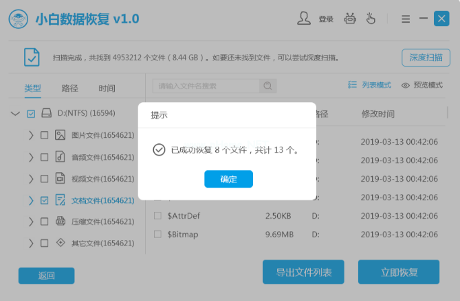3、掃描好后就能夠看到掃描出來U盤中的文件,找到并勾選好要恢復(fù)的文件,點(diǎn)擊右下角的“立即恢復(fù)”即可。