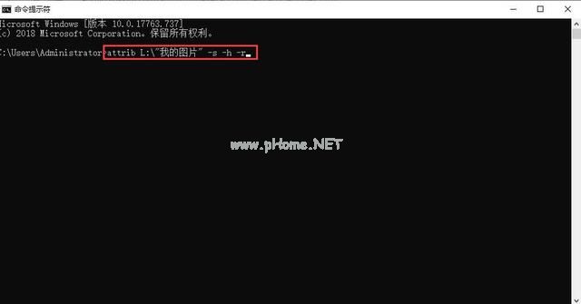 2、接著輸入命令:attrib L:\"我的圖片" -s -h -r(其中大寫字母L是我的u盤盤符)按回車鍵以后可以查看u盤里文件是不是能顯示出來了,如果要顯示L盤里所有文件,大家可輸入:attrib L:\"*" -s -h -r /s /d。