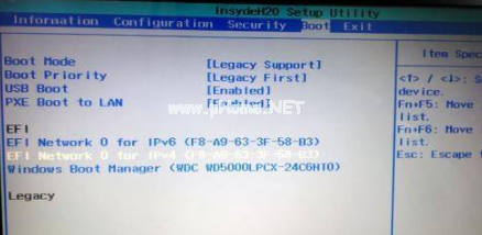 4、在boot選項界面中設(shè)置legacyonly模式。