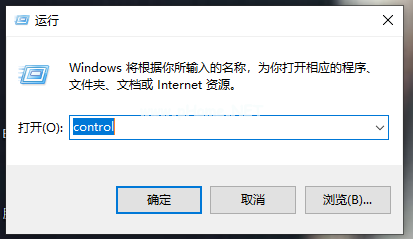 2、排除之后,同時快捷鍵“ win + r”,在打開的運(yùn)行窗口界面中輸入“ control”,打開控制面板。