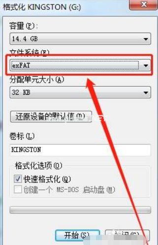 2、在彈出的選項(xiàng)框界面中“文件系統(tǒng)”選擇“exFAT”;