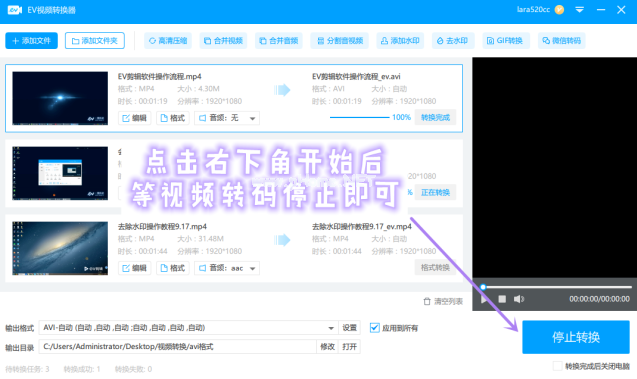 點(diǎn)擊右下角開始轉(zhuǎn)換,等待視頻轉(zhuǎn)碼完成即可。