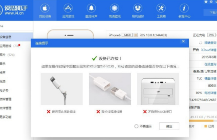 1、使用愛思助手虛擬U盤之前,要留意軟件提示手機可用空間,以此判斷是否可以進行文件傳輸。另外,由于iOS系統(tǒng)限制,如果將文件存放在虛擬U盤,無法直接在設備中查看或者打開文件。