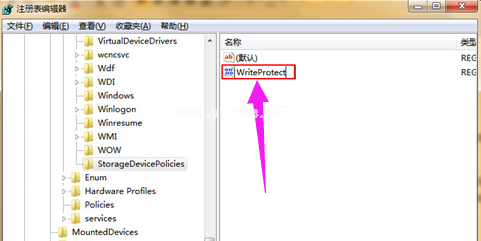 4.接著選中“torageDevicePolicies項(xiàng),在右側(cè)新建的“Dword值”將其命名為“WriteProtect”。
