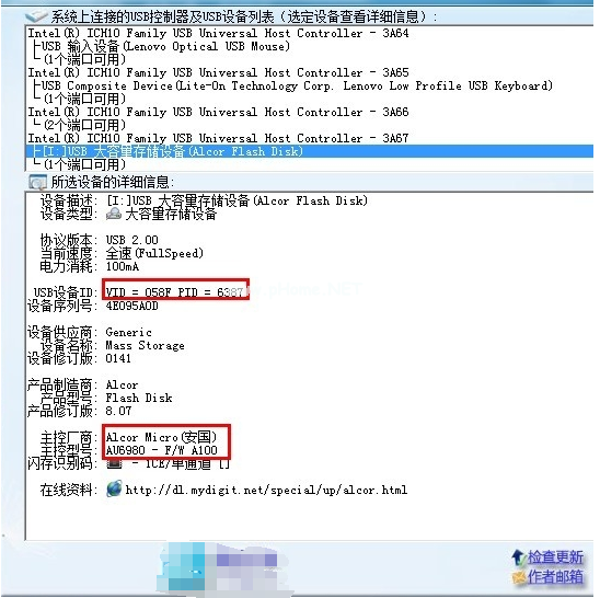 3、根據(jù)U盤的PID、VID以及主控型號(hào)在網(wǎng)上搜索相關(guān)量產(chǎn)工具。當(dāng)然,我們能夠直接點(diǎn)擊該檢測(cè)工具下方推薦的對(duì)應(yīng)官方主頁(yè)上去查找并下載相應(yīng)的量產(chǎn)工具。