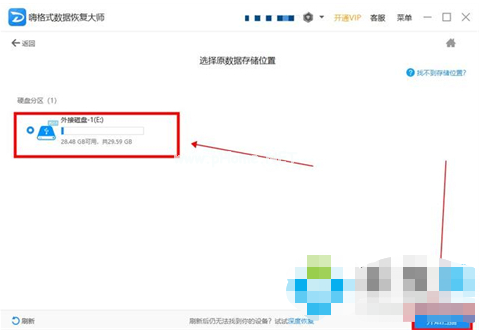 2、接著在原來(lái)數(shù)據(jù)存儲(chǔ)的頁(yè)面,選擇該u盤進(jìn)行掃描。