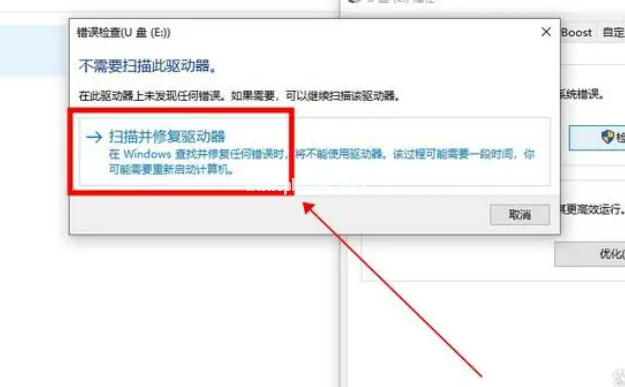 3:在錯(cuò)誤檢查窗口中,點(diǎn)擊“掃描并修復(fù)驅(qū)動(dòng)器”,系統(tǒng)會(huì)自動(dòng)修復(fù)文件系統(tǒng)錯(cuò)誤和掃描并嘗試恢復(fù)壞扇區(qū)。
