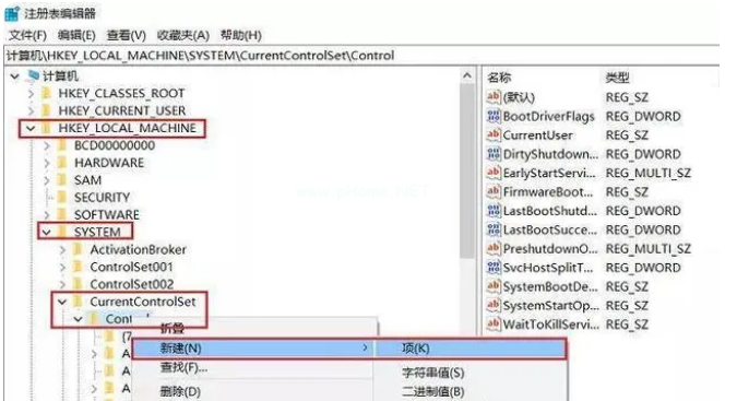 2、進(jìn)入“注冊表編輯器”頁面后,按序打開以下 文件夾打開“HKEY_LOCAL_MACHINE-SYSTEM-CurrentControlSet-Control”。