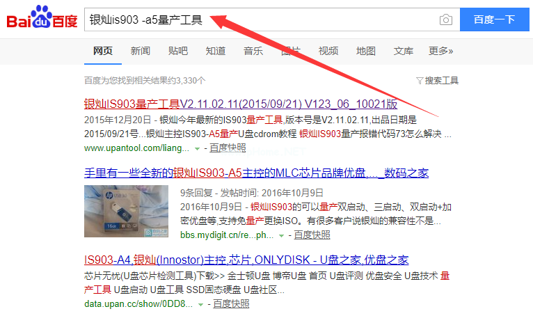 2、知道了你的U盤型號(hào)之后即可在網(wǎng)上根據(jù)你的U盤芯片型號(hào)下載對(duì)應(yīng)的U盤量產(chǎn)工具了,根據(jù)U盤芯片型號(hào)搜索工具下載即可。