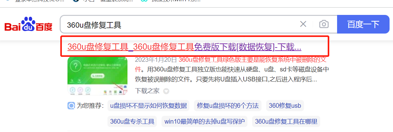 1、百度搜索360u盤修復(fù)工具,點擊進入。