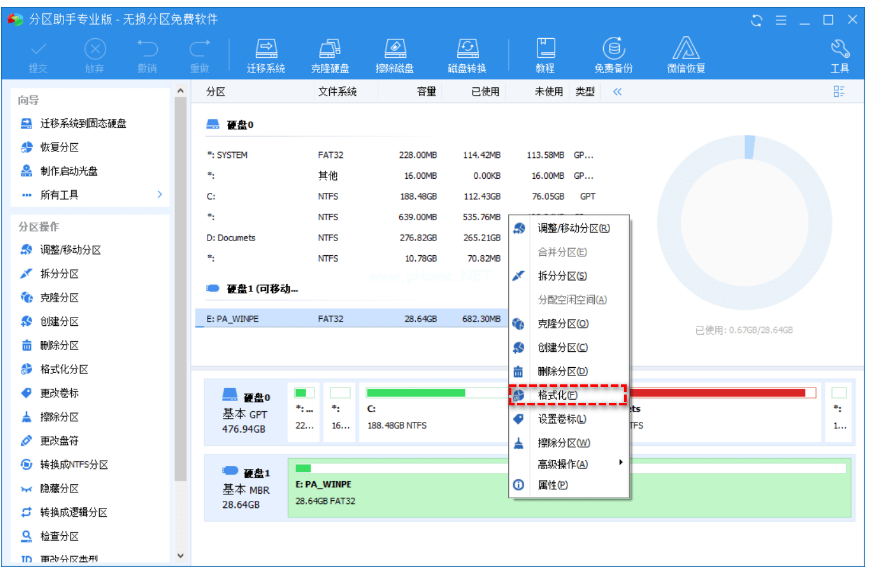 1、你可以點擊下方按鈕或進入下載中心,下載安裝并打開傲梅分區(qū)助手,按照提示將U盤格式化。