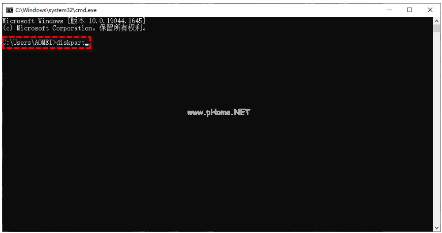 2、在“cmd”中輸入“diskpart”后按“回車”。