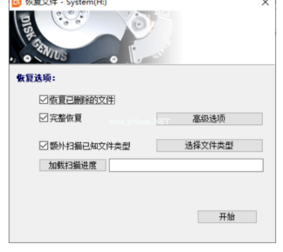 3、點(diǎn)擊"開始"按鈕,DiskGenius軟件開始對U盤進(jìn)行深度掃描。