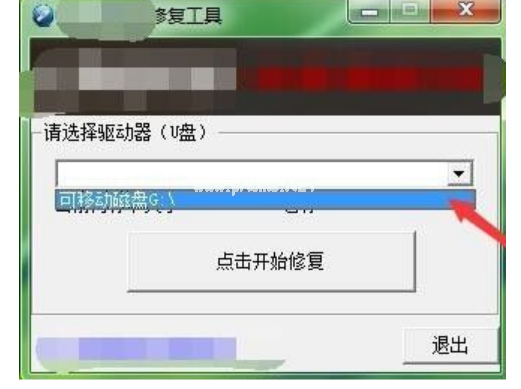 選擇U盤盤符,點(diǎn)擊開始修復(fù)。