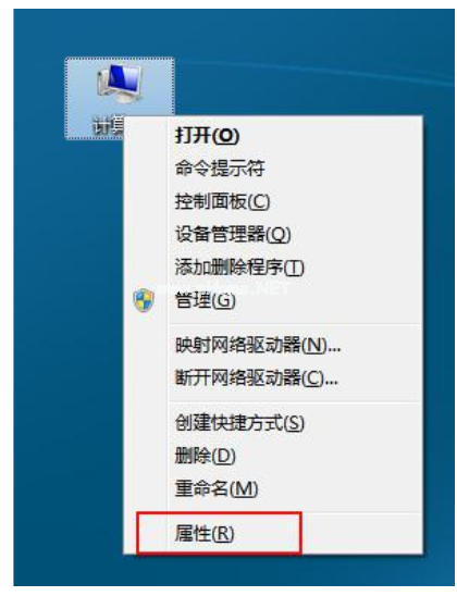 1、鼠標右鍵“計算機”圖標,在彈出的列表選擇“屬性”。
