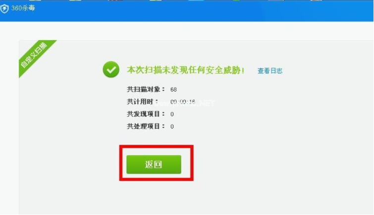 4、等候掃描詳細(xì)介紹,假如有病毒感染,會出現(xiàn)清晰病毒感染的選項,要是沒有,會告之U盤是安全的并發(fā)生返回選項。