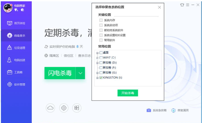4、電腦管家會自動啟動并開始對U盤進(jìn)行病毒查殺了。