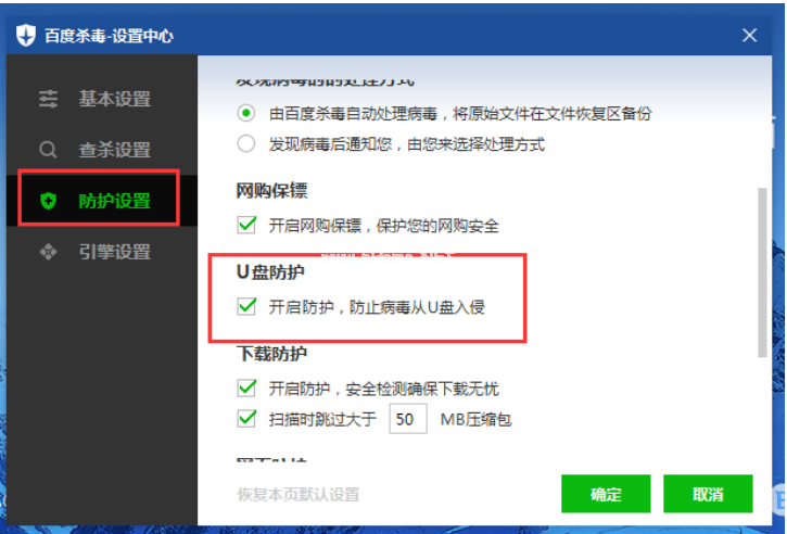 方法三:使用百度殺毒開啟U盤防護(hù)