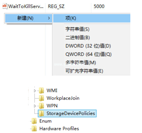 3、新建方法:右鍵點(diǎn)擊“Control”;然后依次點(diǎn)擊新建--項(xiàng)。 然后把新建的重命名為”StorageDevicePolicies”。