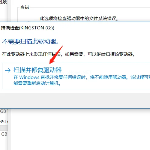 5、點(diǎn)擊“掃描并修復(fù)驅(qū)動(dòng)器”,電腦會(huì)對(duì)U盤里的文件進(jìn)行掃描和修復(fù)。