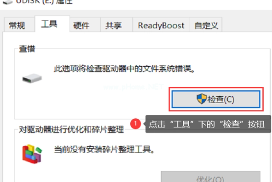 2、切換到工具。點(diǎn)擊開始檢查,在彈出窗口中同時選擇兩項(xiàng)。點(diǎn)擊開始來檢查并修復(fù)磁盤錯誤,修復(fù)完成,即可嘗試打開U盤。