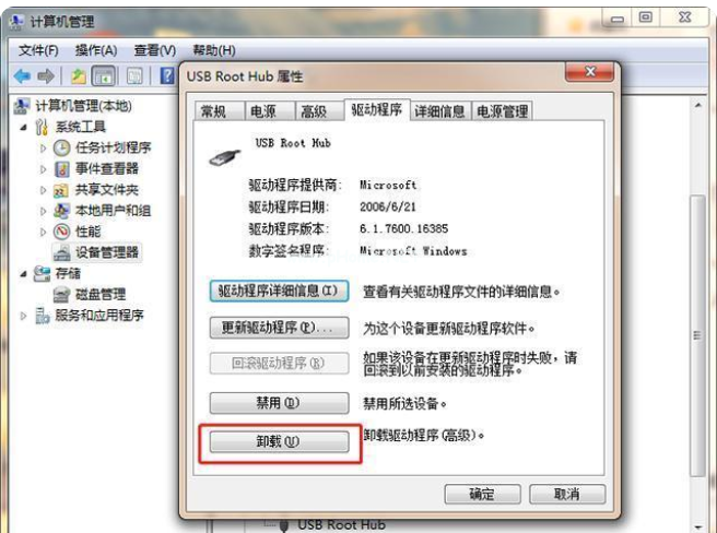 2、彈出窗口中,接著選擇【驅(qū)動(dòng)程序】—【卸載】—【確定】,當(dāng)這些操作完成后,即可將U盤(pán)重新插回電腦即可檢測(cè)到U盤(pán)。