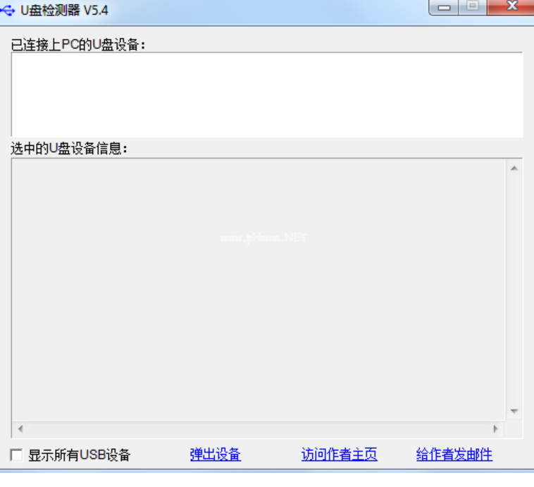 U盤檢測器一個免費的USB存儲設(shè)備檢測工具,U盤檢測器能查看諸如USB存儲設(shè)備名稱、盤符、VID&PID、序列號、制造商信息、產(chǎn)品信息、版本、傳輸速度等連接到PC上的U盤信息。
