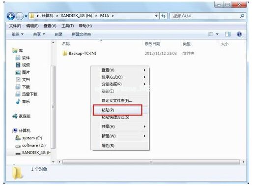 4、如果你要將該視頻文件復(fù)制到U盤的指定目錄,則可以先將該視頻復(fù)制,再進入到U盤的指定目錄,執(zhí)行“粘貼”即可將視頻復(fù)制到該目錄。