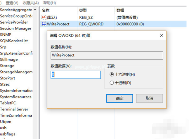 6、鼠標(biāo)點擊WriteProtect。 把WriteProtect的數(shù)值數(shù)據(jù)設(shè)置為0,點擊確定之后插入U盤即可解決。
