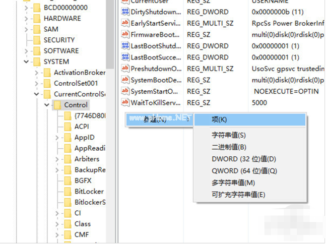 3、新建方法。鼠標(biāo)右鍵點擊“Control”(或者直接在右側(cè)空白區(qū)域點擊右鍵),鼠標(biāo)依次點擊新建-項(如圖)