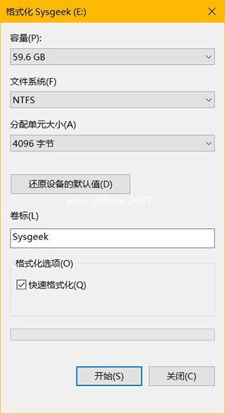3、選項(xiàng)都確定好之后,點(diǎn)擊「開始」就會(huì)立即開始格式化過程,勾選「快速格式化」則不會(huì)對(duì)壞扇區(qū)進(jìn)行掃描,如果你的存儲(chǔ)或 U 盤有故障,可以取消該選項(xiàng)讓 Windows 10 進(jìn)行徹底掃描。格式化完成之后,會(huì)收到格式化完畢的提示。