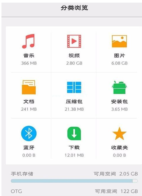 4、然后在跳轉(zhuǎn)后的OTG這面,打開手機(jī)儲(chǔ)存的分類瀏覽。