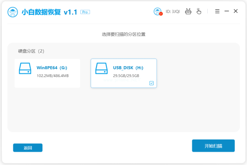 2、接下來選擇我們要掃描的u盤分區(qū)位置。