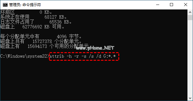 輸入attrib -h -r -s /s /d G:*.* 并按回車。(字母G為U盤的驅(qū)動器號,根據(jù)具體情況修改。)該命令用于清除屬性文件和顯示隱藏文件。