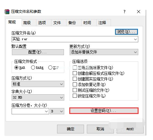 3、在壓縮文件名和參數(shù)窗口界面下方找到并點擊設(shè)置密碼。
