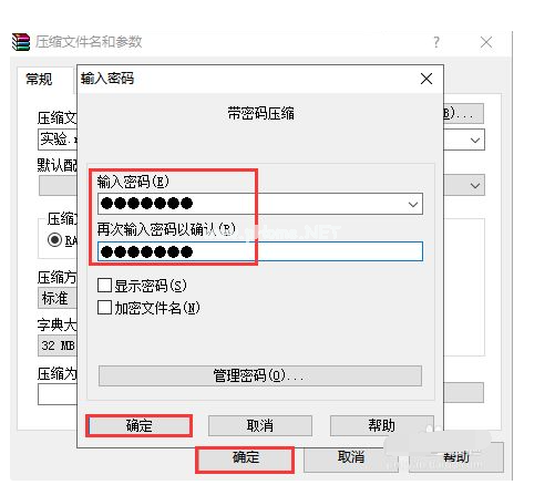 4、輸入兩次加密的密碼,依次點擊確定,待壓縮完成。