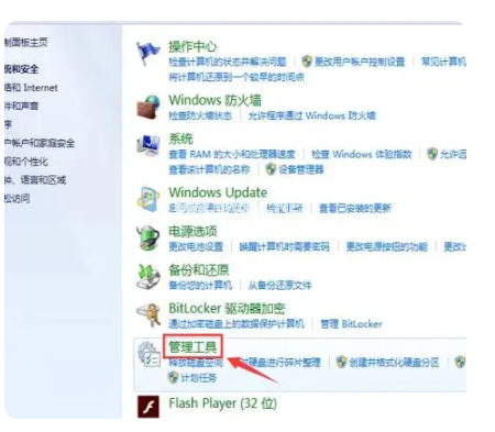 2、然后在系統(tǒng)和安全中,我們點(diǎn)擊進(jìn)入管理工具;