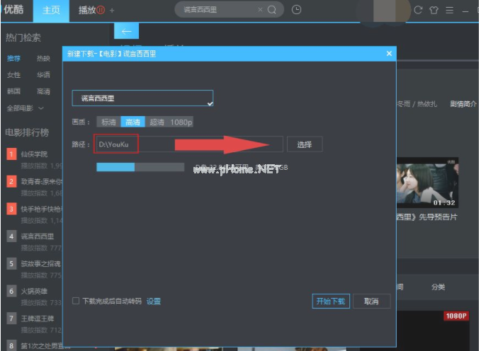 使用優(yōu)酷下載電影到U盤(pán)(其余app操作方法一致):