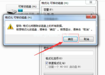 3、顯示“警告:格式化將刪除此磁盤上的所有數(shù)據(jù)。”消息,單擊確定。
